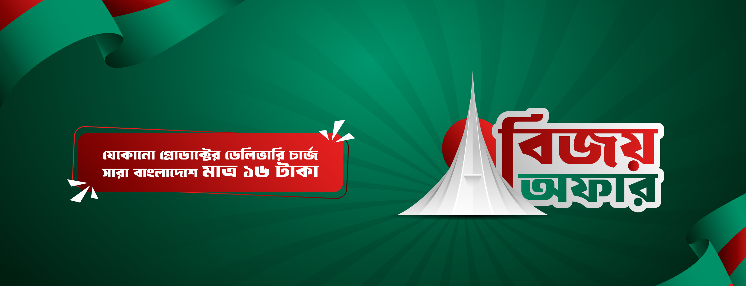 মহান বিজয়ের মাস উপলক্ষে সারা বাংলাদেশে ডেলিভারি চার্জ মাত্র ১৬ টাকা।